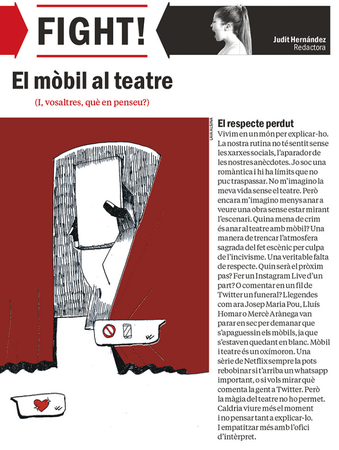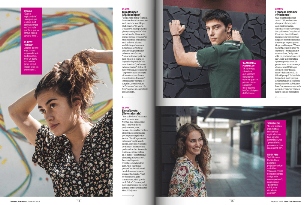 Participé en una edición especial de la revista Time Out Barcelona sobre teatro, realizada por jóvenes y dirigida a un público joven. Este proyecto se llevó a cabo en colaboración con Escena 25 (ahora Cultura Jove), un programa de la Generalitat de Catalunya que ofrecía entradas de teatro a precios reducidos para menores de 25 años.